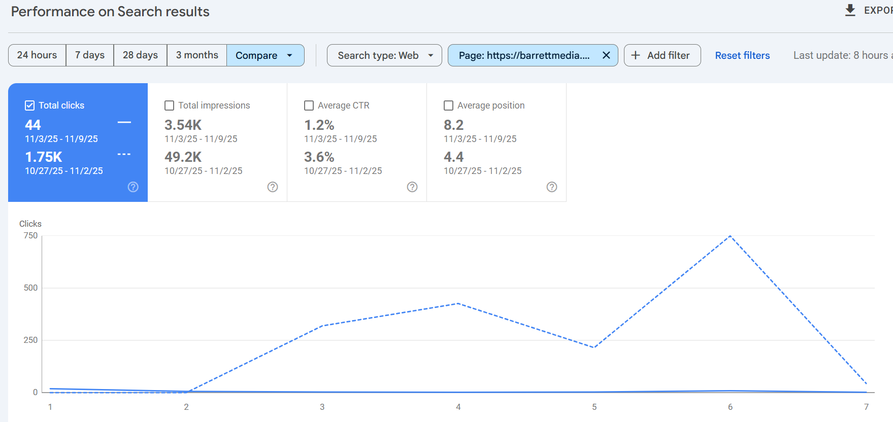 The success of the AEO strategy is validated by the real-world GSC data captured during the critical news cycle (October 29 – November 5), demonstrating the content's immediate and dominant authority.